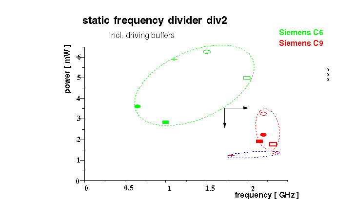 | CMOS 0.25 m m | 9.5 G | 8 mW@2.5V | div128/129 cycle stealing method, power down |
