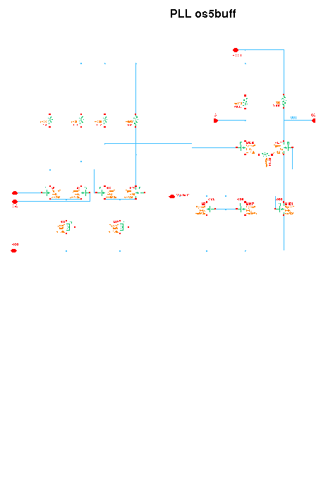 Im oberen Bereich ist die Konditionierung des Referenzeingangssignales Xref mit Hilfe von zwei Invertern, eine Logik zur Bildung von digitalen Kontrollsignalen, die kapazitive on chip" Abblockung mit drei MOS Kapazitaeten sowie der Ausgangstreiber buffer" fuer das RF Ausgangssignal des VCO abgebildet.